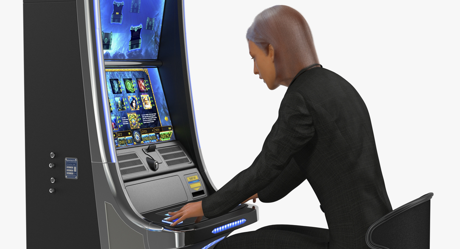 Woman Gambler Playing on Slot Machine Rigged with Fur is a high quality, photo real 3d model that will enhance detail and realism to any of your rendering projects. The model has a fully textured, detailed design that allows for close-up renders, and was originally modeled in 3ds Max 2020 and rendered with V-Ray. Renders have no postprocessing!