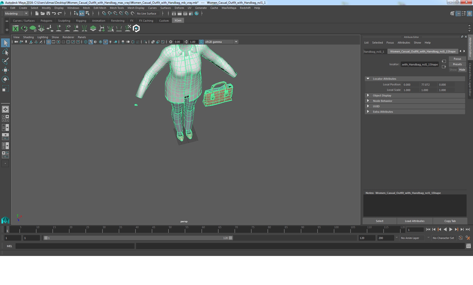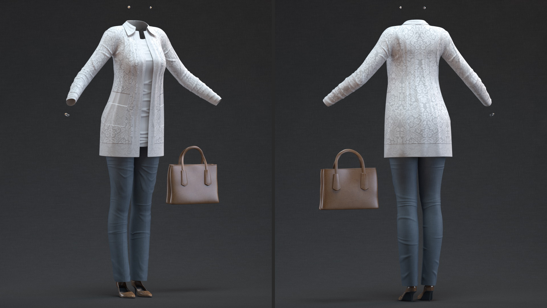 Women Casual Outfit with Handbag is a high quality, photo real 3d model that will enhance detail and realism to any of your rendering projects. The model has a fully textured, detailed design that allows for close-up renders, and was originally modeled in 3ds Max 2020 and rendered with V-Ray. Renders have no postprocessing!
