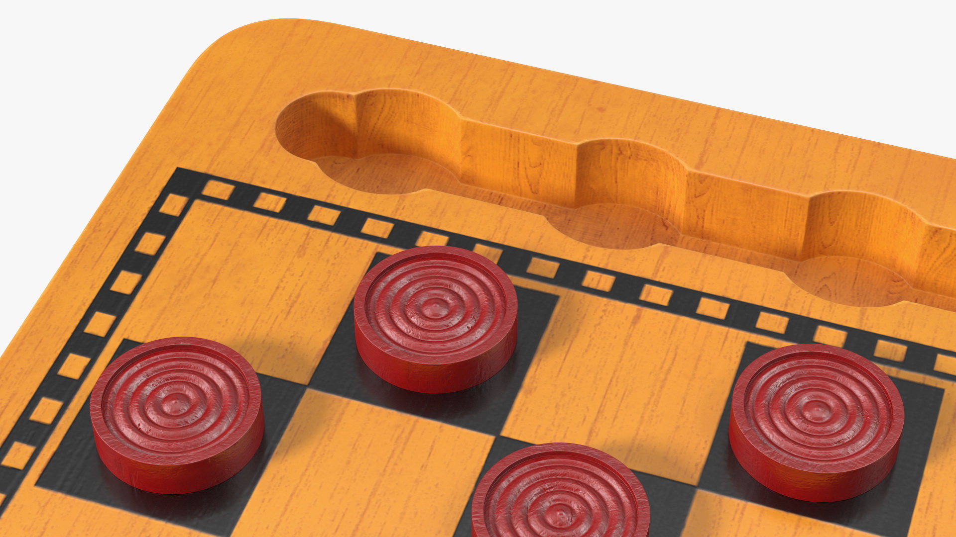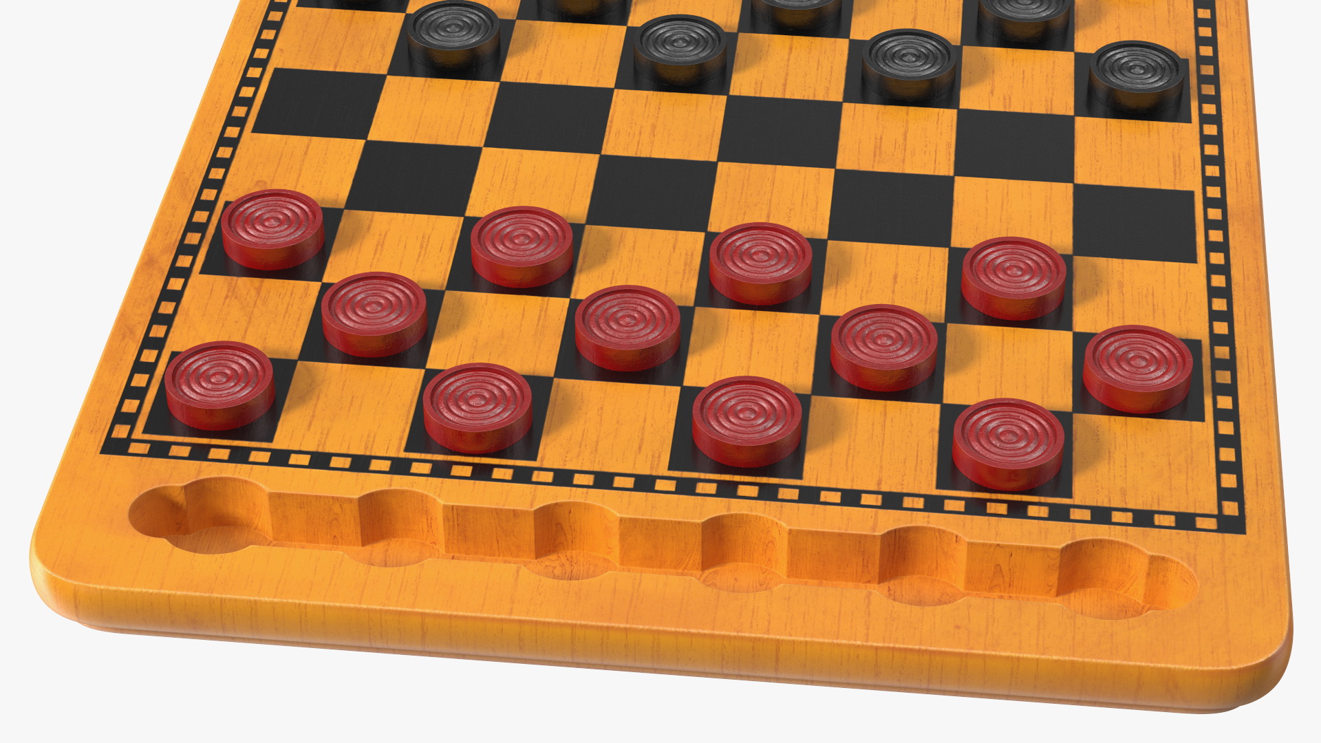 Wood Checkers Set Game Ready is a 3d model of strategy board game for two players which make diagonal moves of uniform game pieces and can be captured by jumping over opponent pieces.