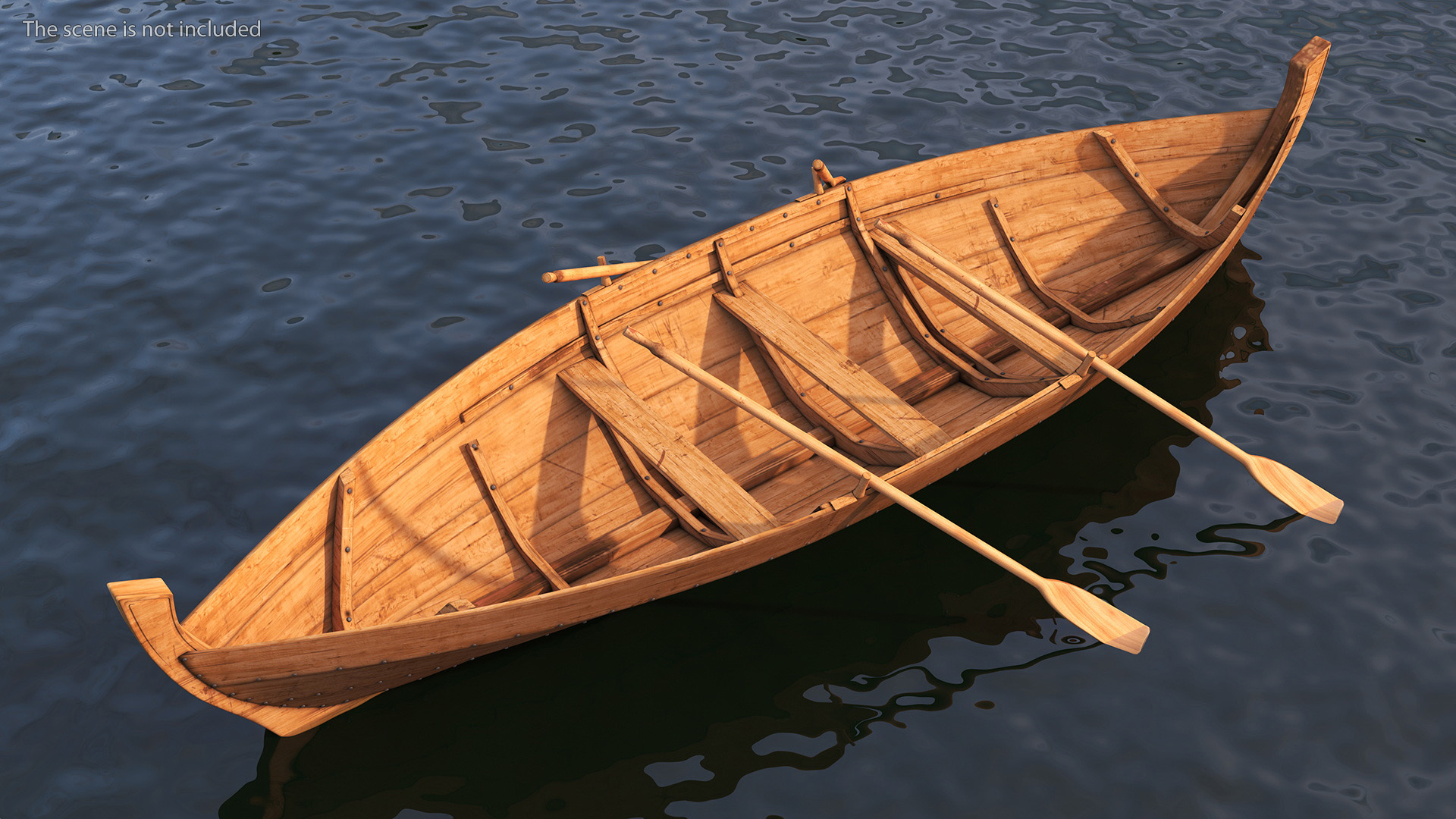 Wooden Boat with Paddles is a three-dimensional model of open boat that is propelled by oars or rowing.