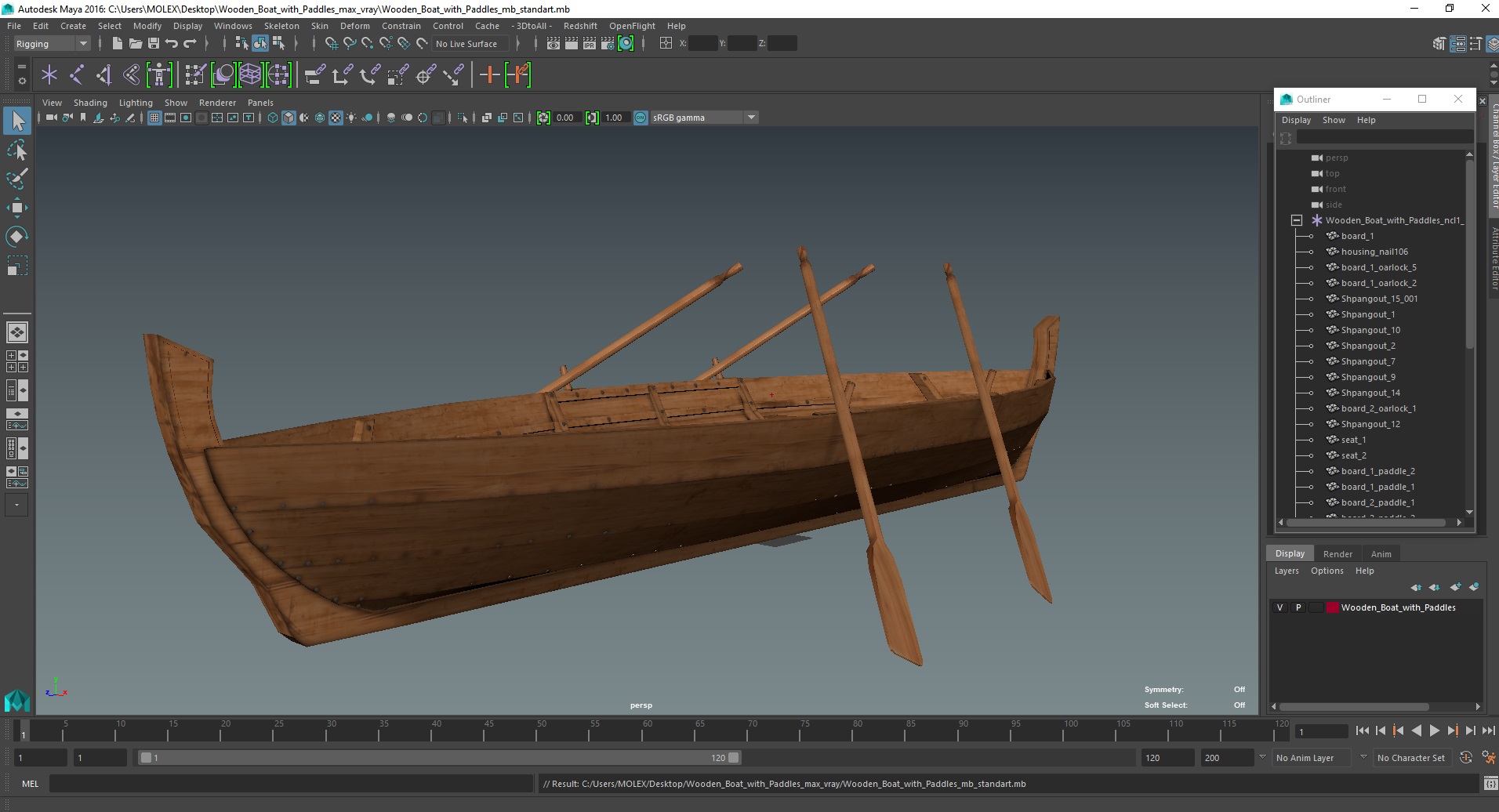 Wooden Boat with Paddles is a high quality, photo real 3d model that will enhance detail and realism to any of your rendering projects. The model has a fully textured, detailed design that allows for close-up renders, and was originally modeled in 3ds Max 2020 and rendered with V-Ray. Renders have no postprocessing!