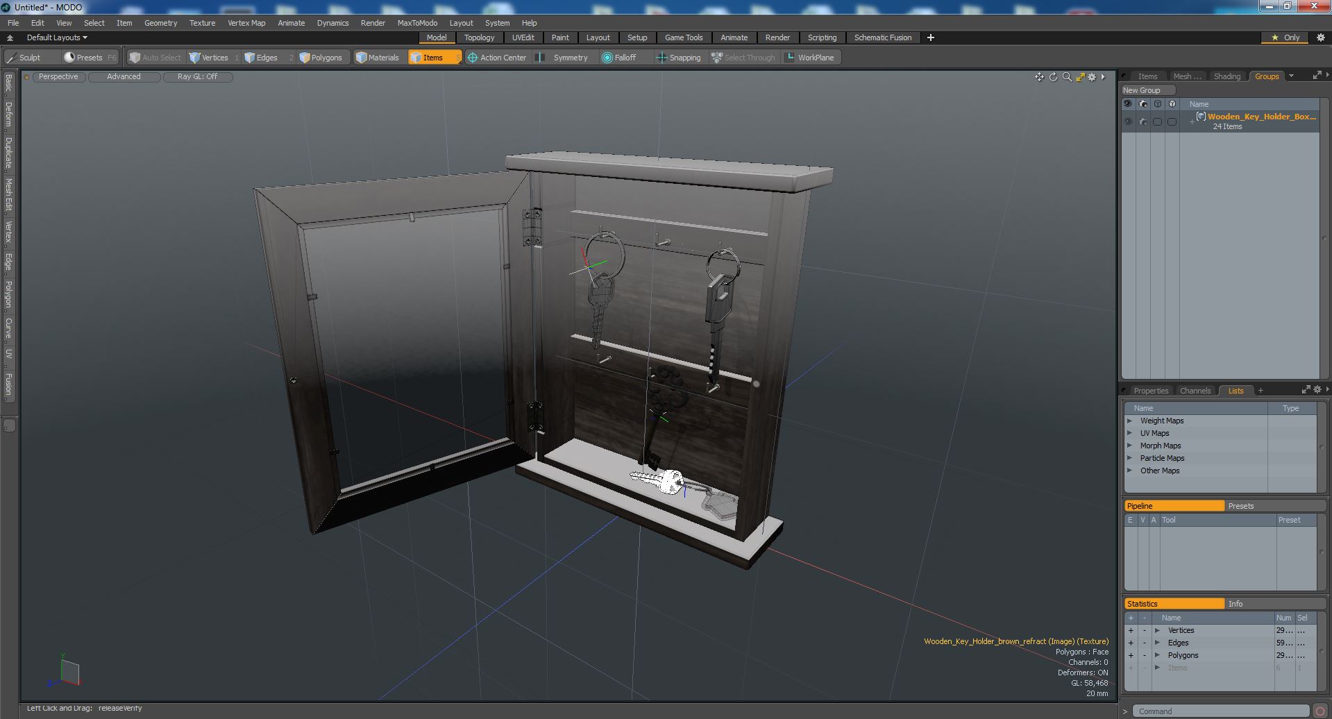 Wooden Key Holder Box with Keys is a high quality, photo real 3d model that will enhance detail and realism to any of your rendering projects. The model has a fully textured, detailed design that allows for close-up renders, and was originally modeled in 3ds Max 2020 and rendered with V-Ray. Renders have no postprocessing!