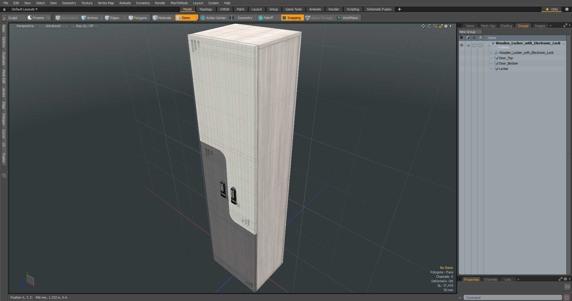 - All objects are logically named and grouped for ease of objects selection and scene management.