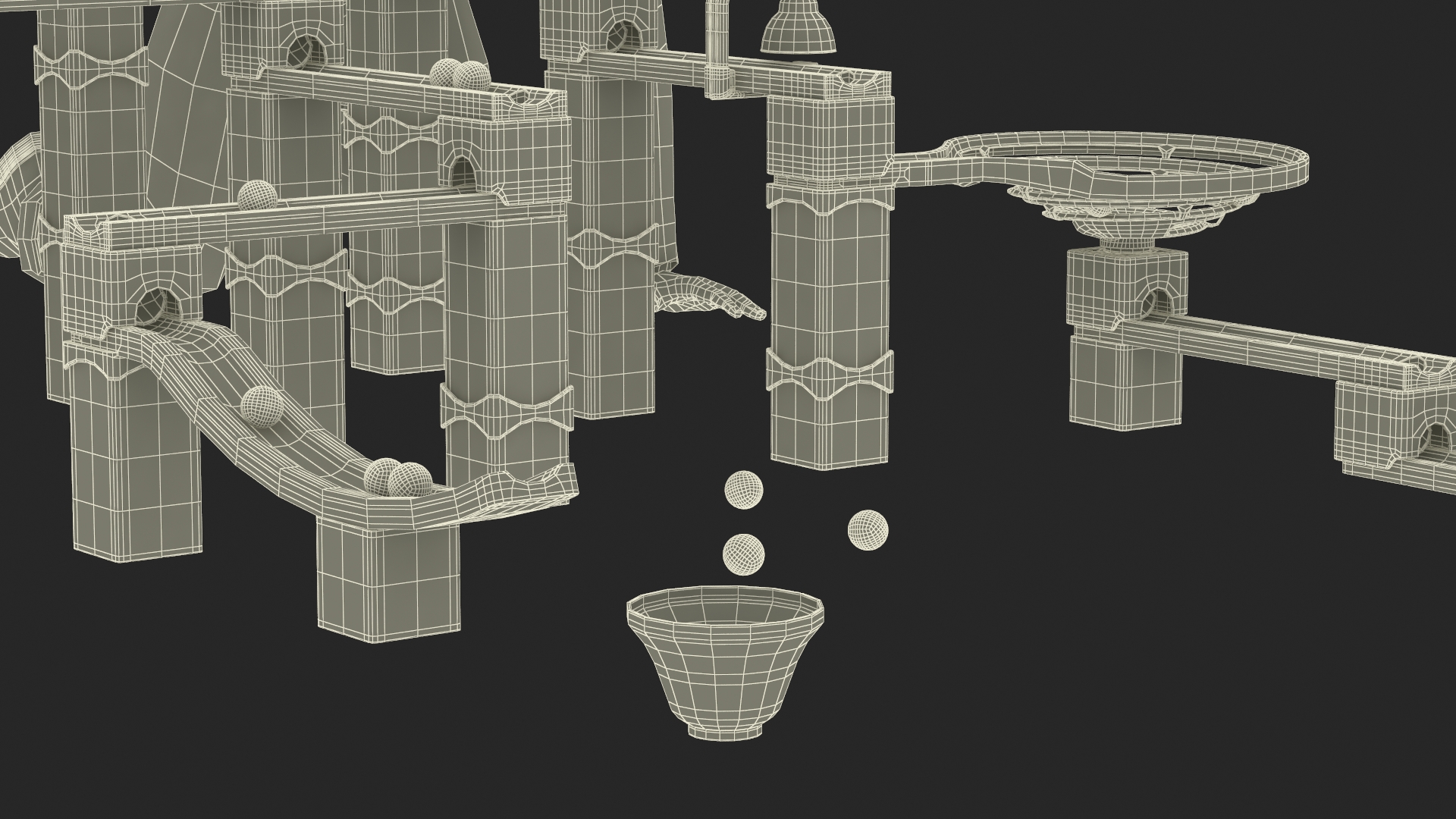 Crafted from natural wood textures, the toy includes intricate tracks, ramps, and tunnels, showcasing its charm and functionality. The model accurately represents the smooth curves of the tracks, the realistic marble details, and the child’s playful posture, making it ideal for lifelike visualizations or educational purposes.