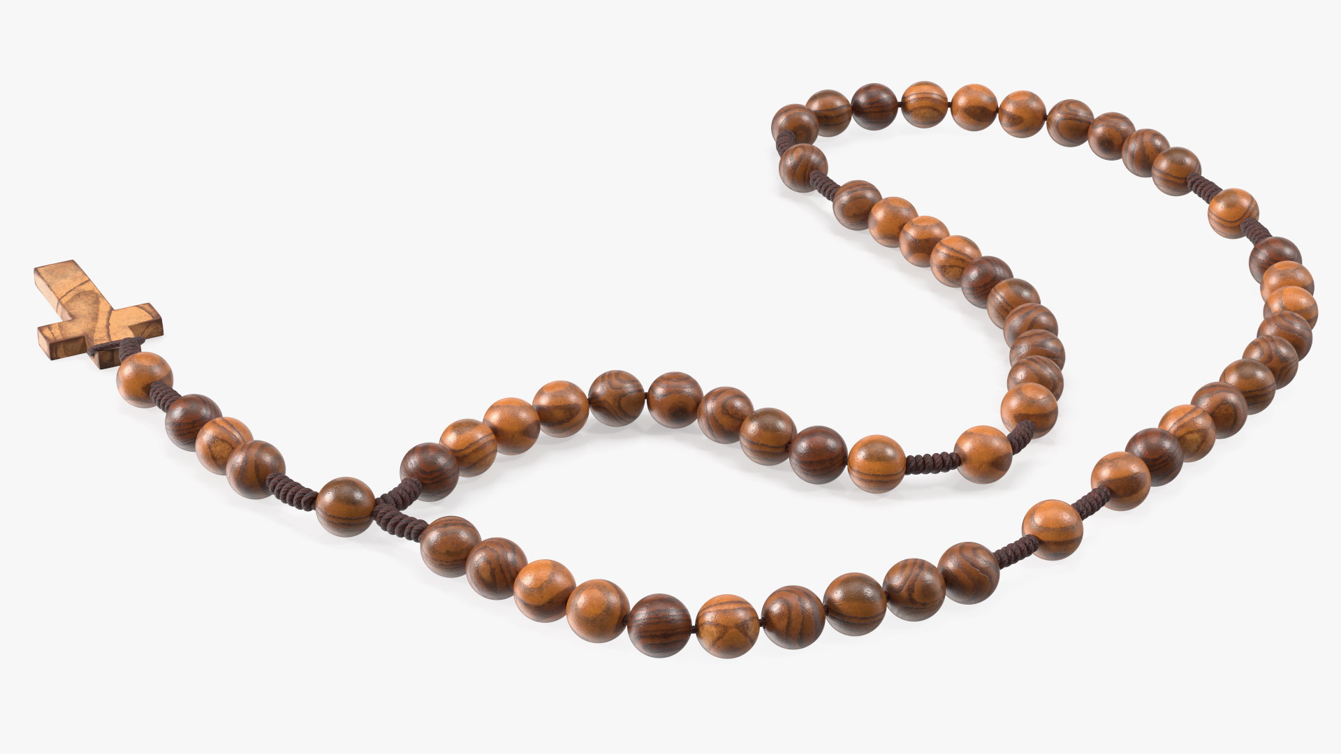 Wooden Prayer Beads with Cross Pendant is a three-dimensional model of religious accessories used for prayer and meditation.