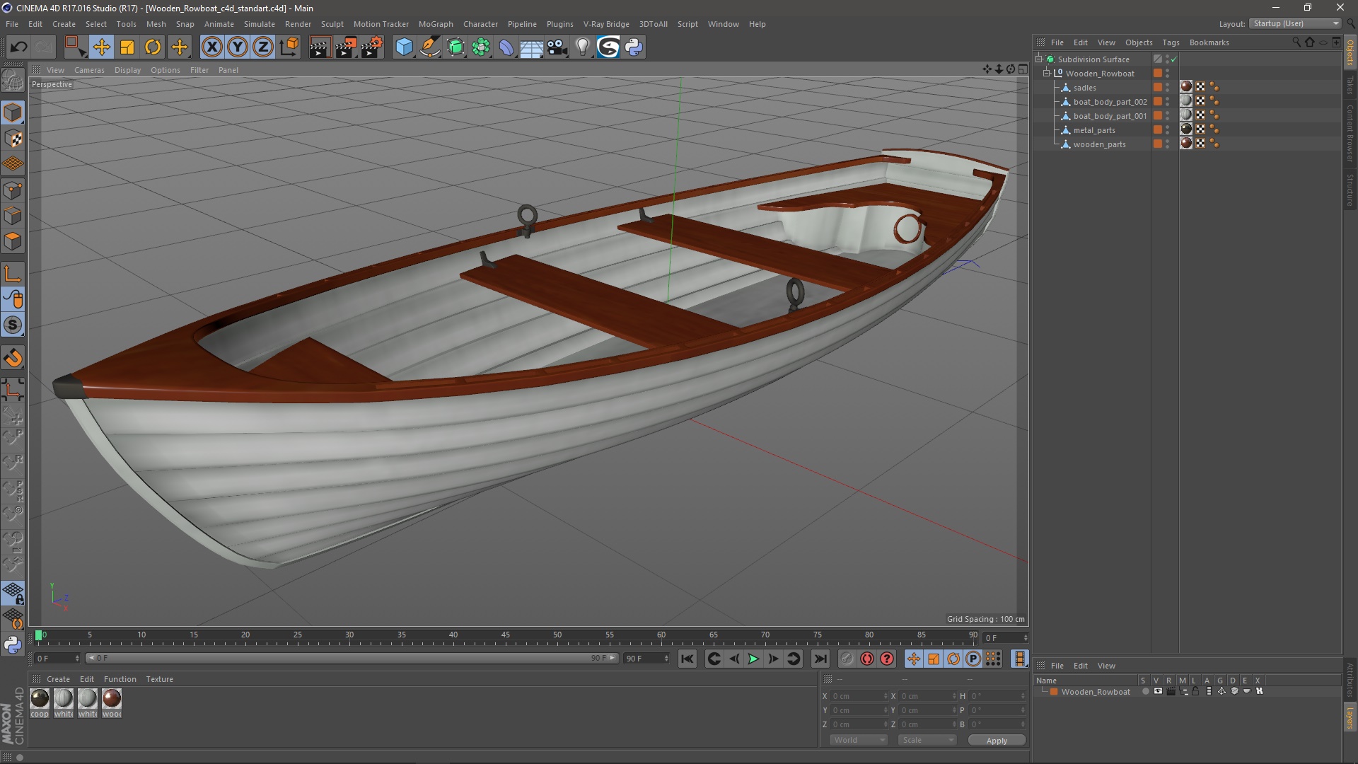 Wooden Rowboat is a 3d model of type of small watercraft constructed from wood, designed for manual propulsion using oars, with rowers seated facing the direction of travel.