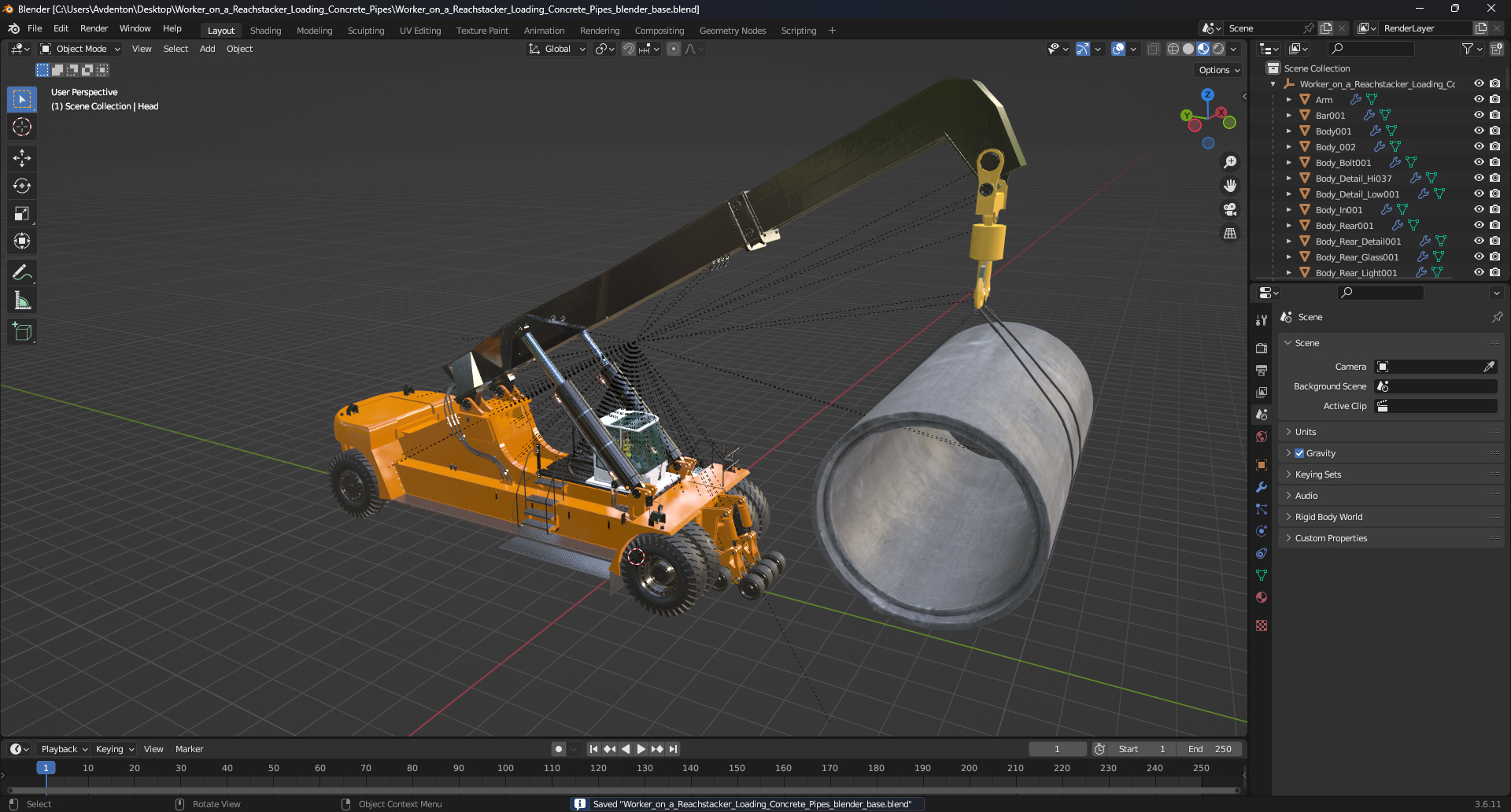 Worker on a Reachstacker Loading Concrete Pipes is a high quality, photo real 3d model that will enhance detail and realism to any of your rendering projects. The model has a fully textured, detailed design that allows for close-up renders, and was originally modeled in 3ds Max 2020 and rendered with V-Ray. Renders have no postprocessing!