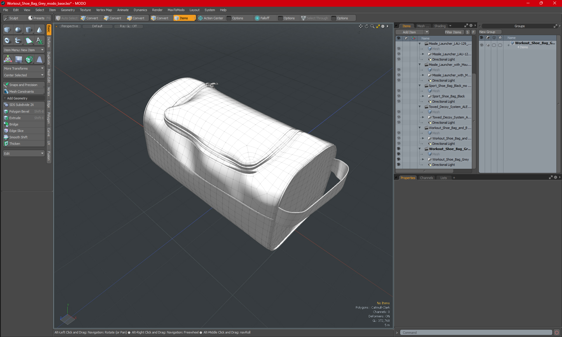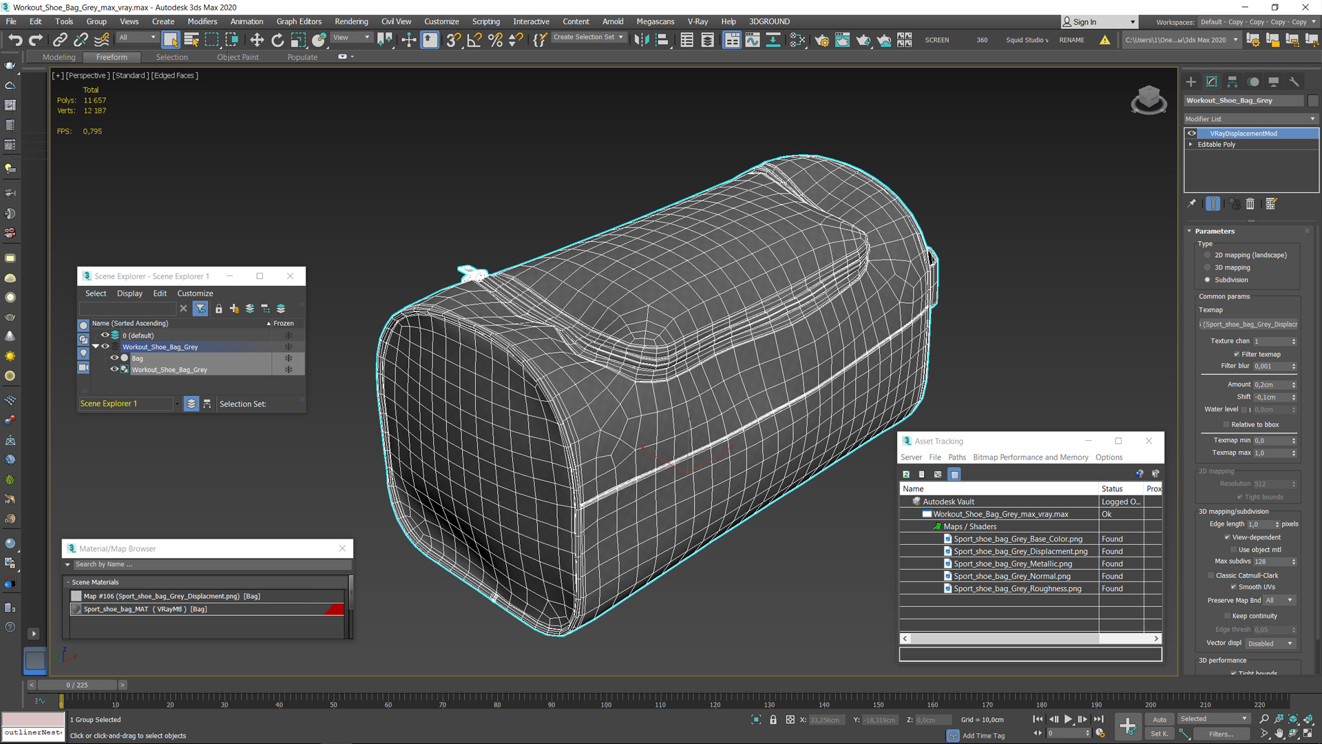 Workout Shoe Bag Grey is a high quality, photo real 3d model that will enhance detail and realism to any of your rendering projects. The model has a fully textured, detailed design that allows for close-up renders, and was originally modeled in 3ds Max 2020 and rendered with V-Ray. Renders have no postprocessing!