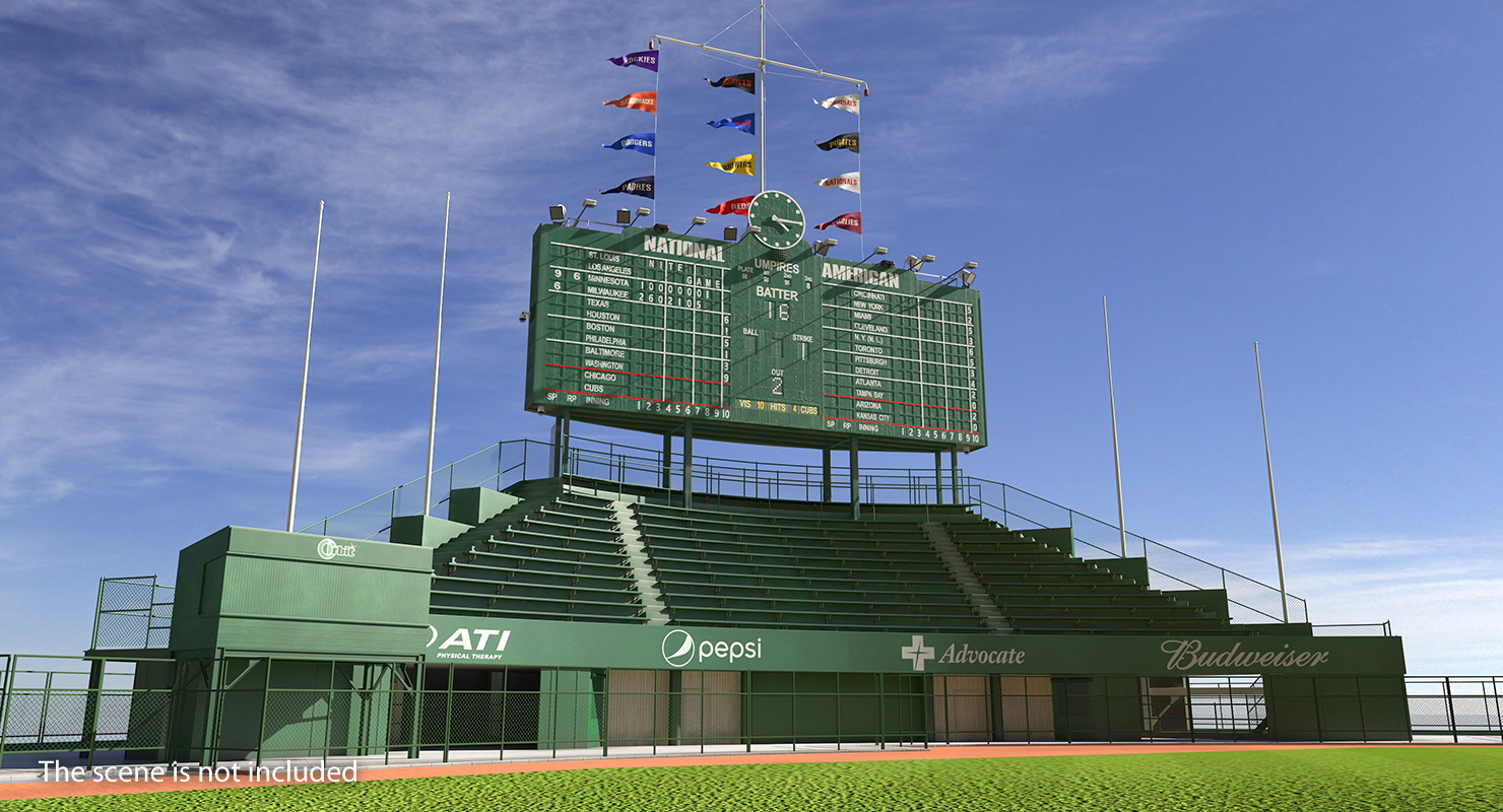Wrigley Field Scoreboard is a high quality, photo real 3d model that will enhance detail and realism to any of your rendering projects. The model has a fully textured, detailed design that allows for close-up renders, and was originally modeled in 3ds Max 2020 and rendered with V-Ray. Renders have no postprocessing!