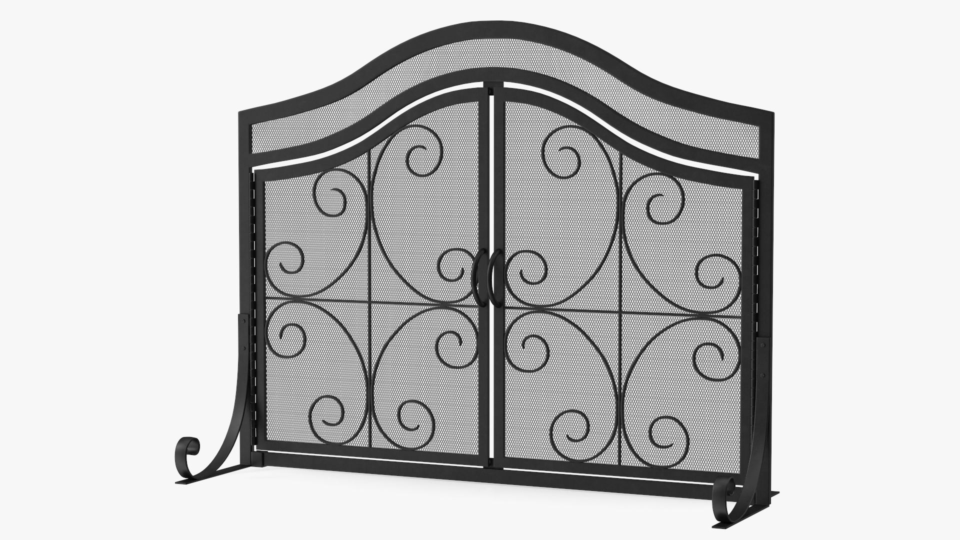 Wrought Iron Fireplace Screen with Doors is a three-dimensional model of a home fireplace (chimney) accessory.