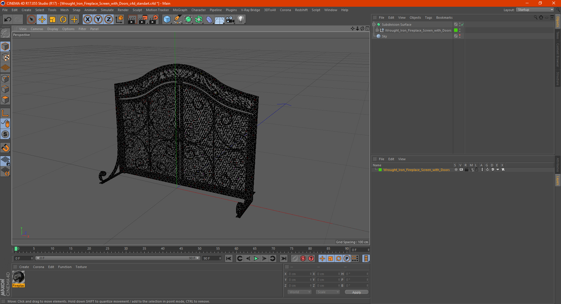 Wrought Iron Fireplace Screen with Doors is a high quality, photo real 3d model that will enhance detail and realism to any of your rendering projects. The model has a fully textured, detailed design that allows for close-up renders, and was originally modeled in 3ds Max 2020 and rendered with V-Ray. Renders have no postprocessing!