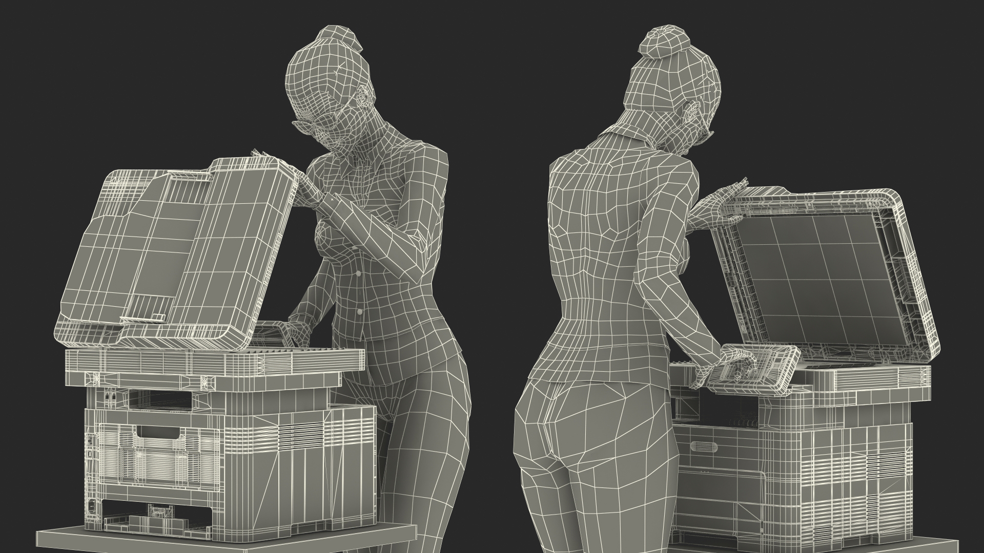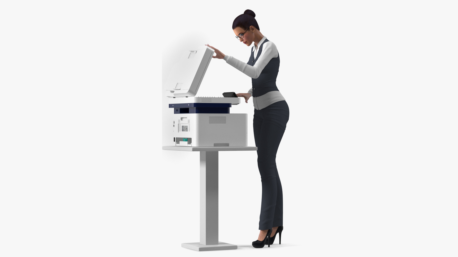 Xerox B215 Multifunction Laser Printer with Business Style Woman Rigged is a high quality, photo real 3d model that will enhance detail and realism to any of your rendering projects. The model has a fully textured, detailed design that allows for close-up renders, and was originally modeled in 3ds Max 2020 and rendered with V-Ray. Renders have no postprocessing!