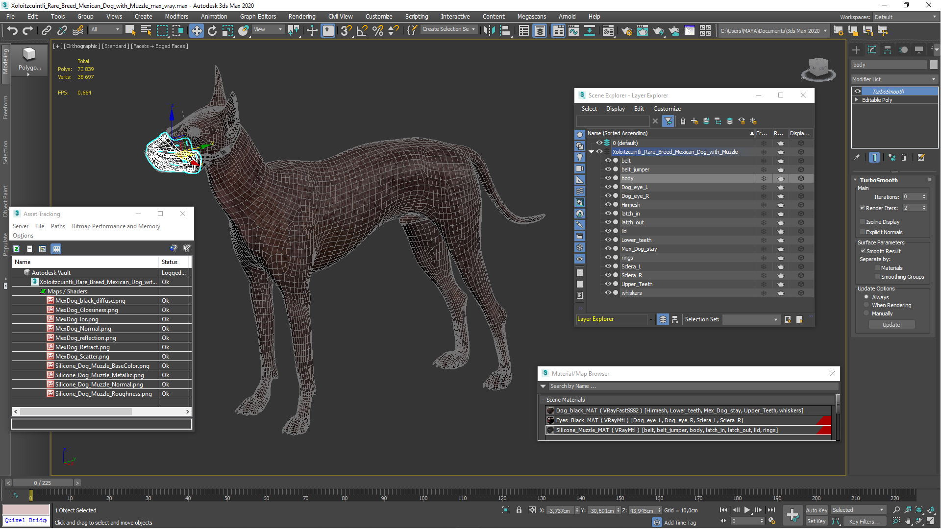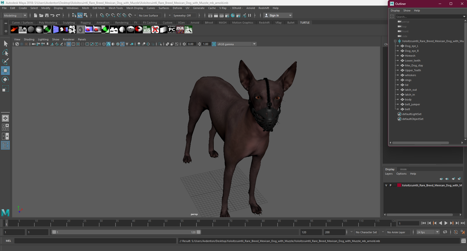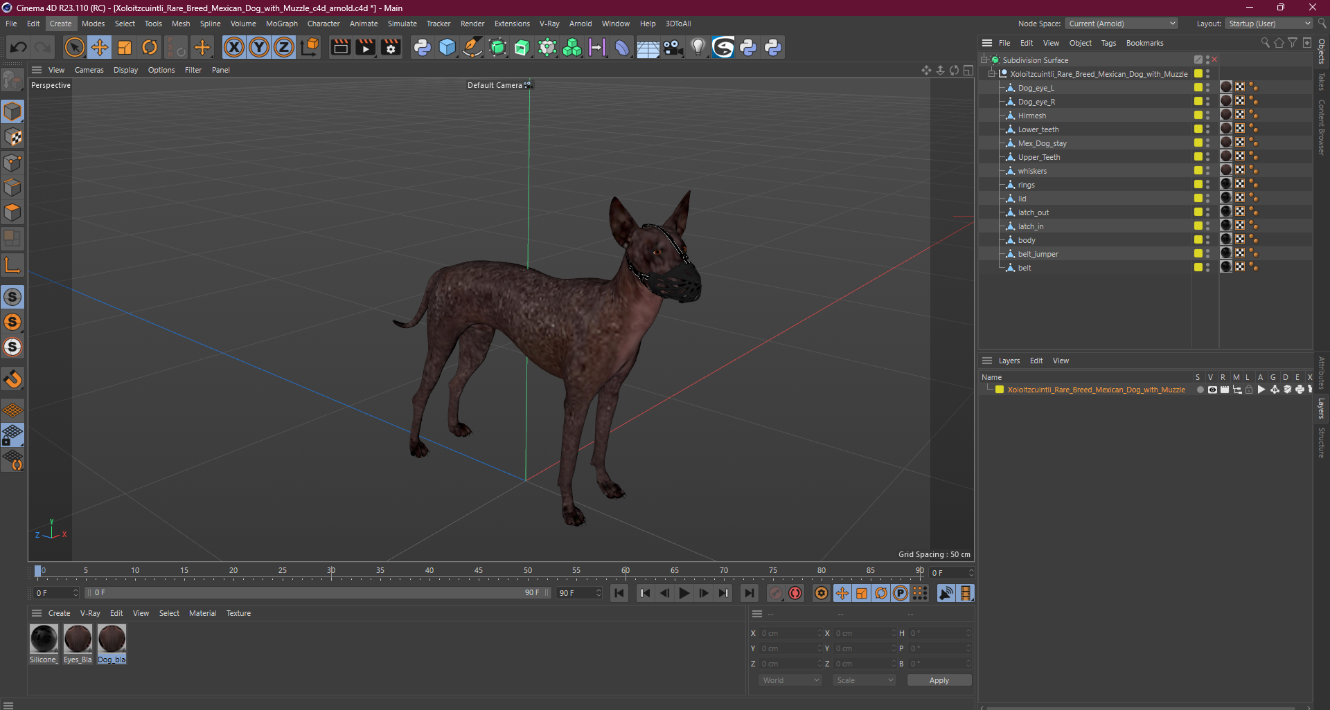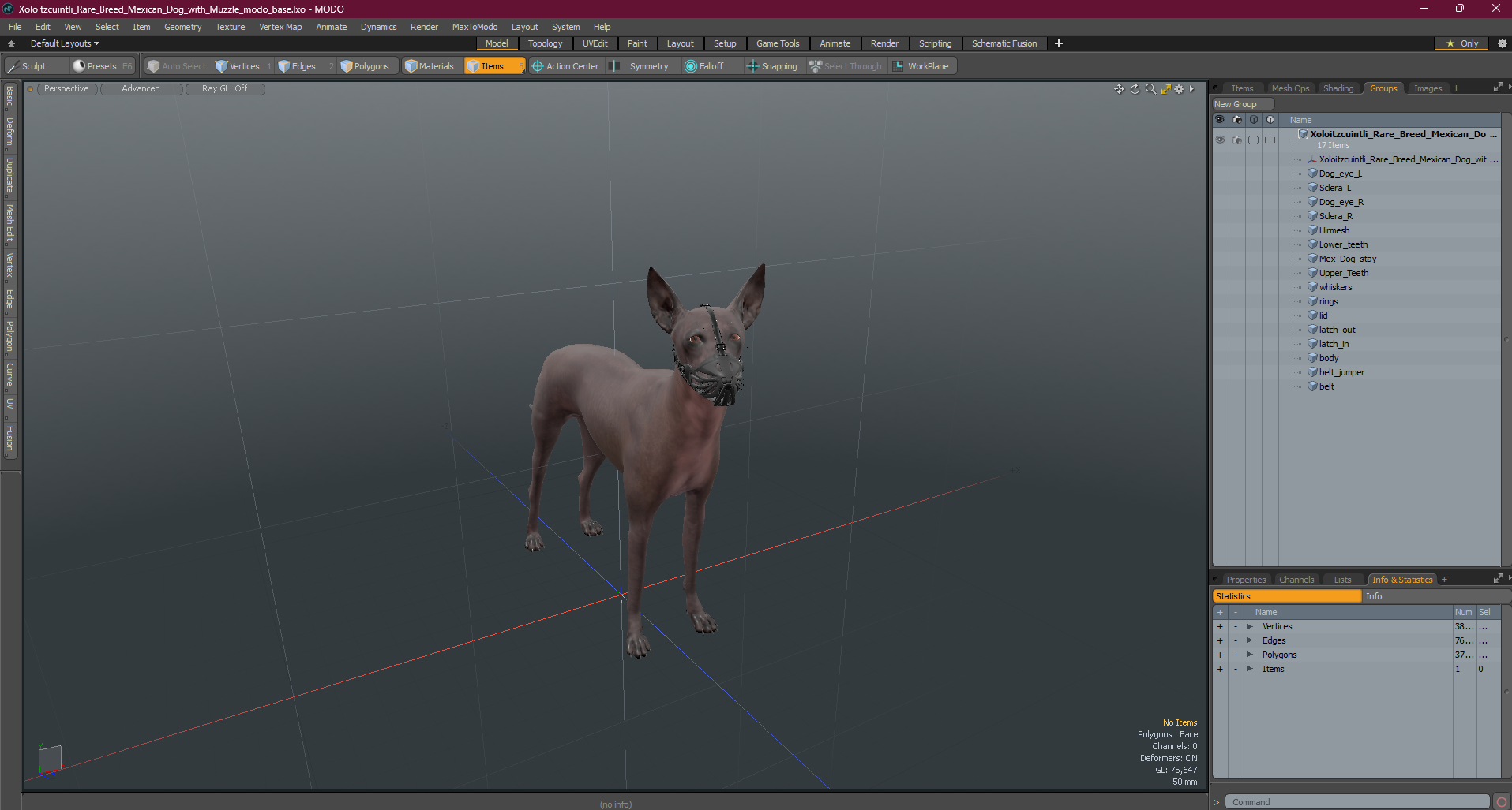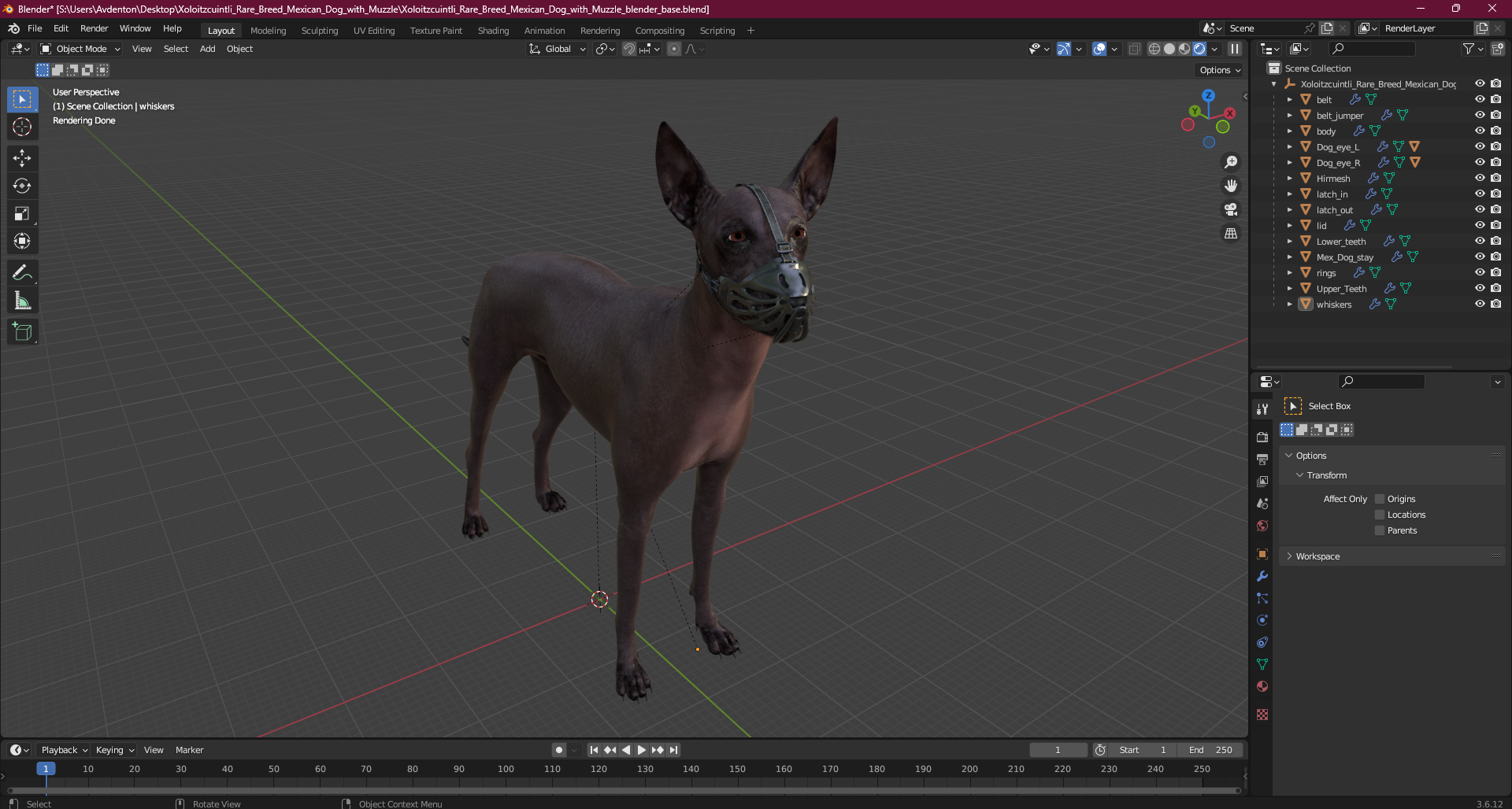 Xoloitzcuintli Rare Breed Mexican Dog with Muzzle is a high quality, photo real 3d model that will enhance detail and realism to any of your rendering projects. The model has a fully textured, detailed design that allows for close-up renders, and was originally modeled in 3ds Max 2020 and rendered with V-Ray. Renders have no postprocessing!