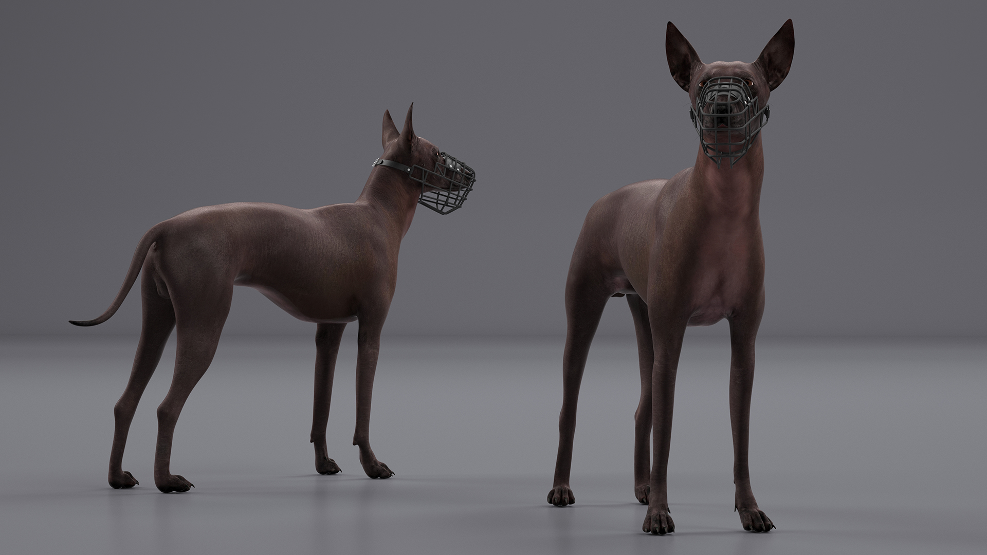 Xoloitzcuintli Rare Breed Mexican Dog with Muzzle is a high quality, photo real 3d model that will enhance detail and realism to any of your rendering projects. The model has a fully textured, detailed design that allows for close-up renders, and was originally modeled in 3ds Max 2020 and rendered with V-Ray. Renders have no postprocessing!