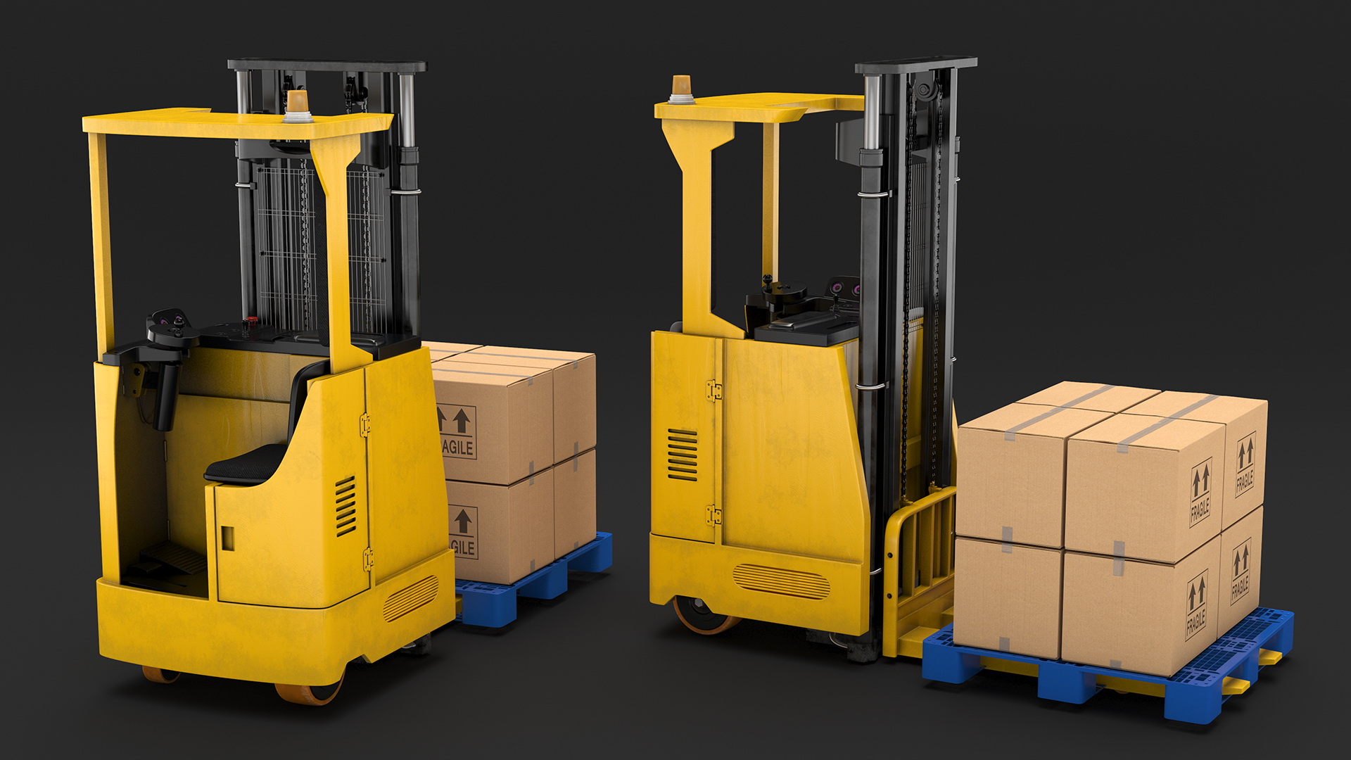 Yale Electric Forklift with Pallet and Boxes is a high quality, photo real 3d model that will enhance detail and realism to any of your rendering projects. The model has a fully textured, detailed design that allows for close-up renders, and was originally modeled in 3ds Max 2020 and rendered with V-Ray. Renders have no postprocessing!