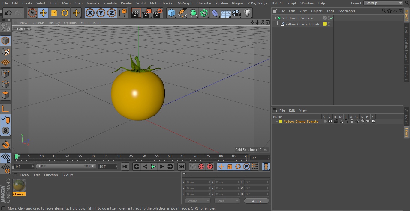Yellow Cherry Tomato is a high quality, photo real 3d model that will enhance detail and realism to any of your rendering projects. The model has a fully textured, detailed design that allows for close-up renders, and was originally modeled in 3ds Max 2020 and rendered with V-Ray. Renders have no postprocessing!