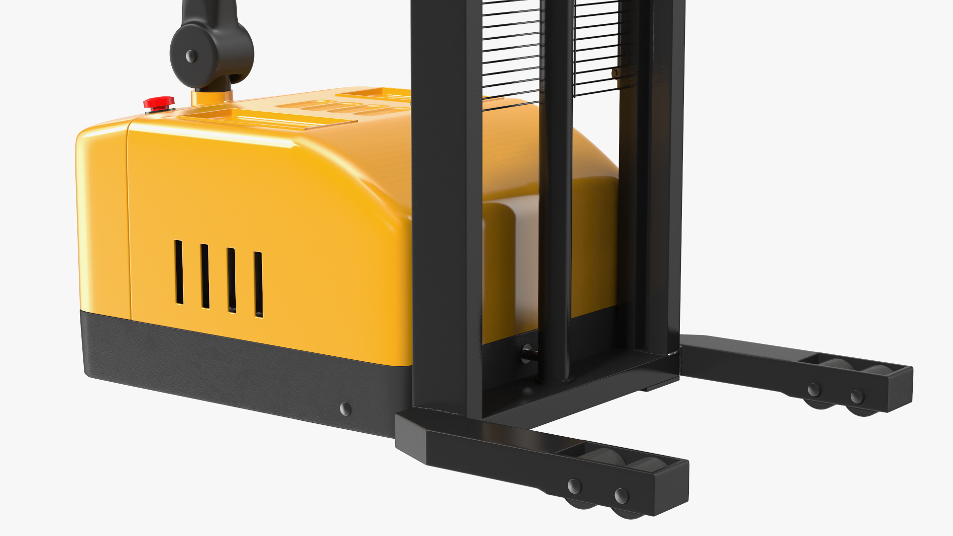 Yellow Pallet Stacker with Wooden Pallet is a three-dimensional model of wooden pallet on electric pallet stacker, which is an electric powered forklift, also known as a warehouse stacker or electrical pallet lift, and which is a primary tool for storehouse shelving works and more.
