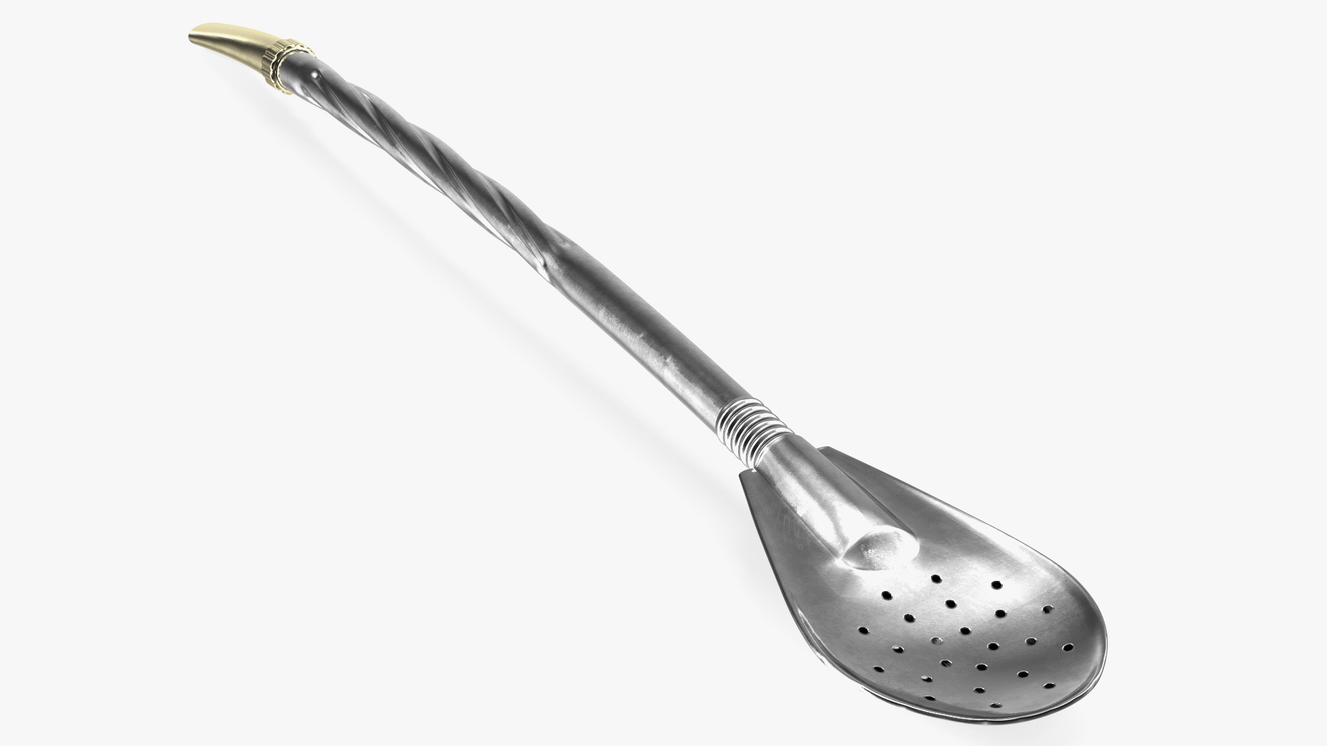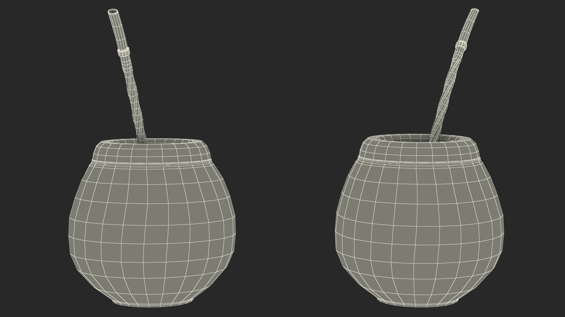 Yerba Mate Striped is a three-dimensional model of a traditional Paraguayan table serving bowl with metal bombilla straw equipment.
