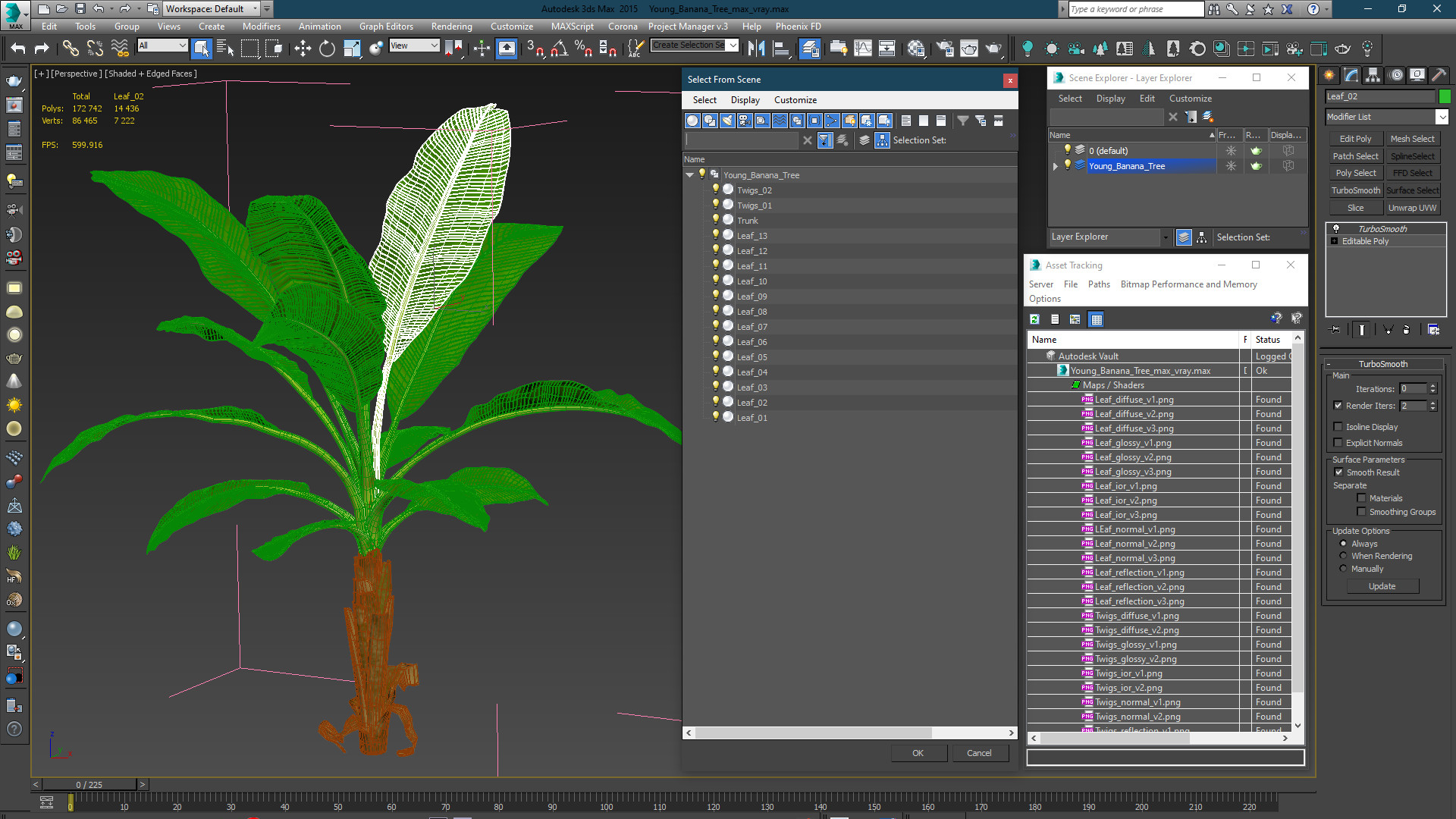 Young Banana Tree is a high quality, photo real 3d model that will enhance detail and realism to any of your rendering projects. The model has a fully textured, detailed design that allows for close-up renders, and was originally modeled in 3ds Max 2020 and rendered with V-Ray. Renders have no postprocessing!