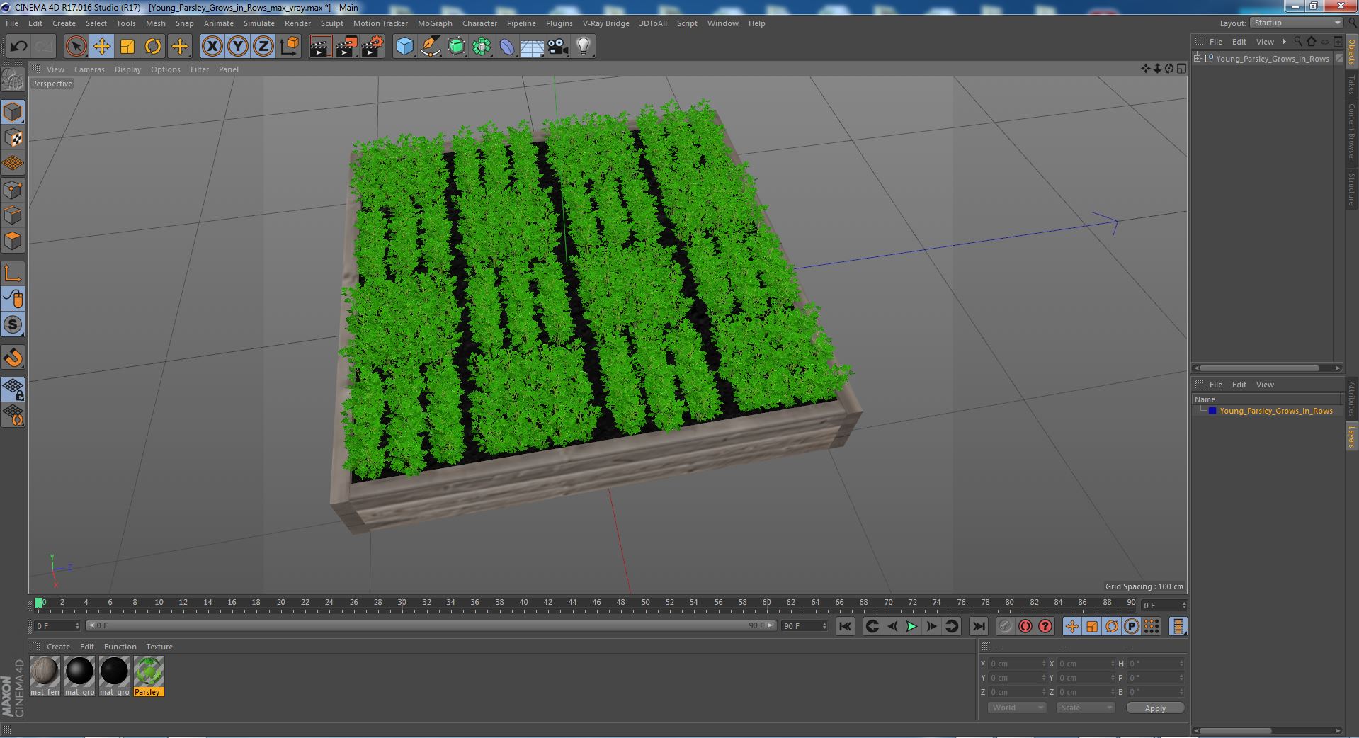 Young Parsley Grows in Rows is a high quality, photo real 3d model that will enhance detail and realism to any of your rendering projects. The model has a fully textured, detailed design that allows for close-up renders, and was originally modeled in 3ds Max 2020 and rendered with V-Ray. Renders have no postprocessing!