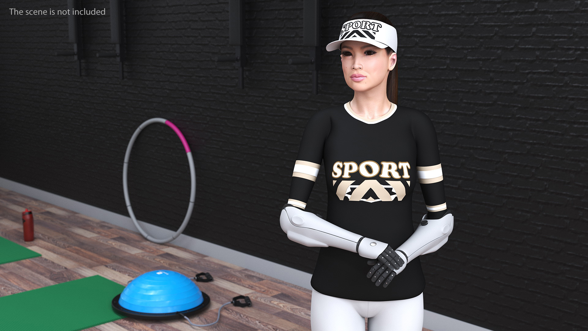 Young Woman with Bionic Arms is a 3d model of female individual who has advanced robotic arms as prosthetic limbs.