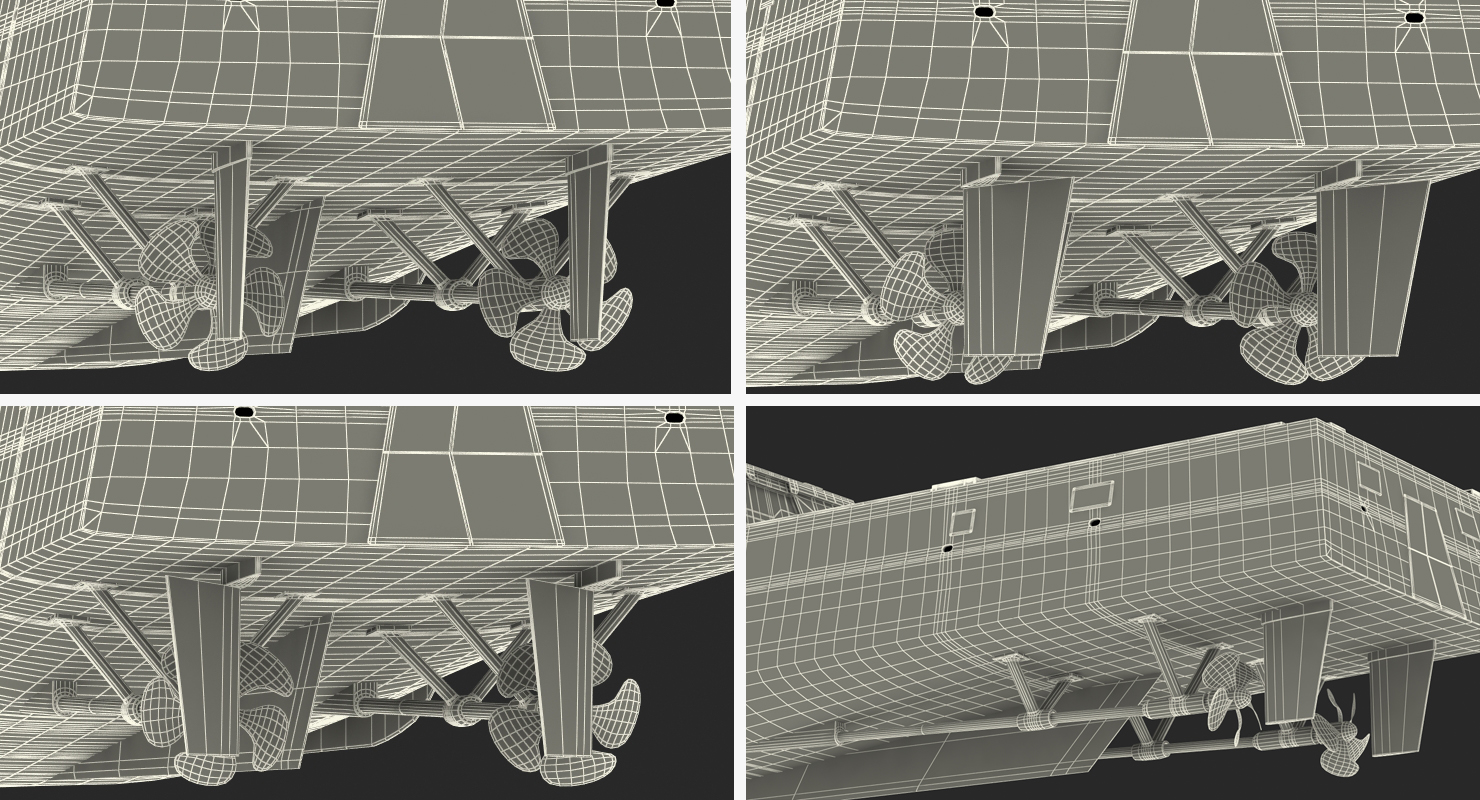 Zumwalt Class Destroyer US Stealth Ship Rigged is fully rigged and is ready to be animated. You can easily position it the way you need or animate it the way your project requires using helpers in 3D Studio Max. See the turntable to get an idea of how rigging works.